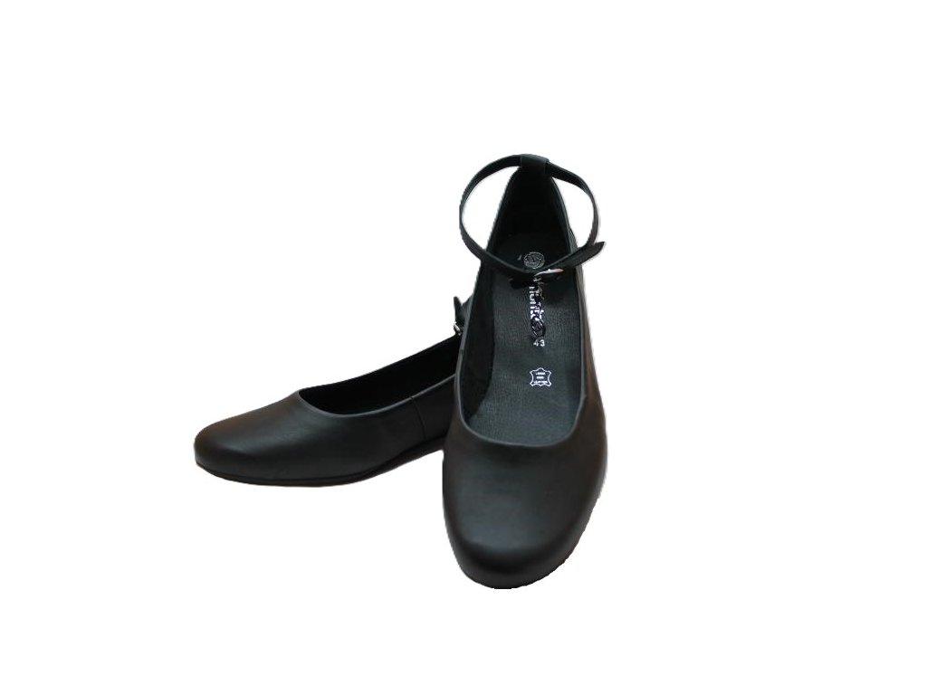 Černé baleríny s páskem kolem kotníku.