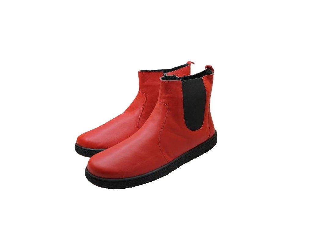Širší kožená kotníková obuv s gumou a zipem. Zateplená stélka.