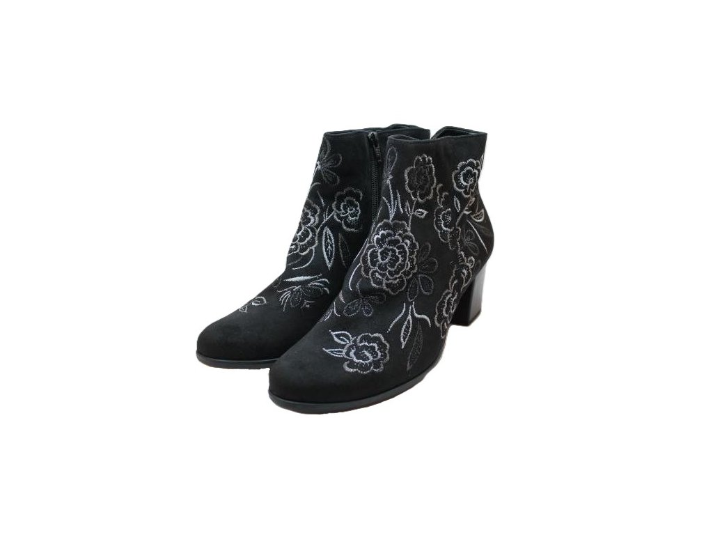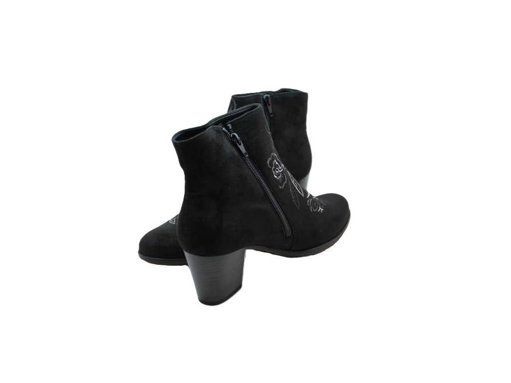 Vyšívané semišové kožené kotníkové kozačky.