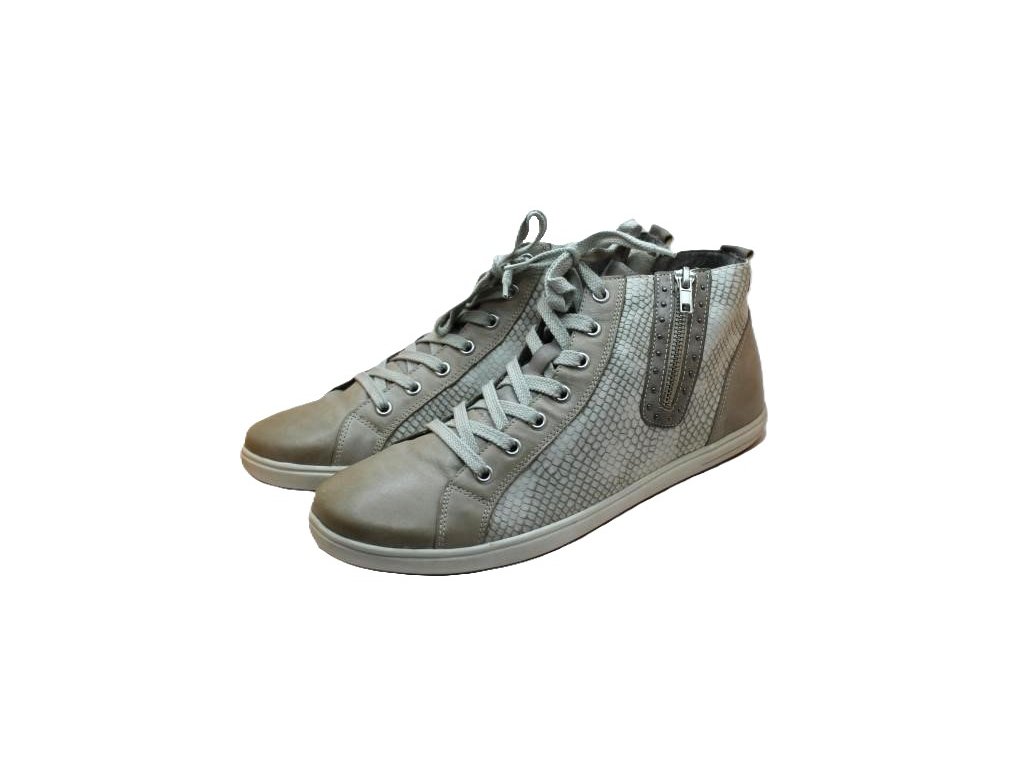 Kožené kotníkové tenisky bez zateplení. Šněrování a zip po straně.