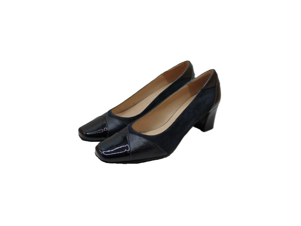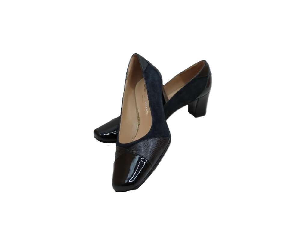 Kožené lodičky, kombinace kůže a lak. Podpatek 5 cm.