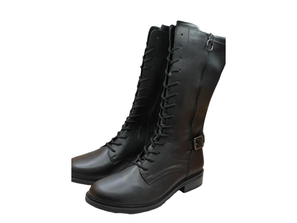 Šněrovací kožené kozačky se zipem. Soft stélka.