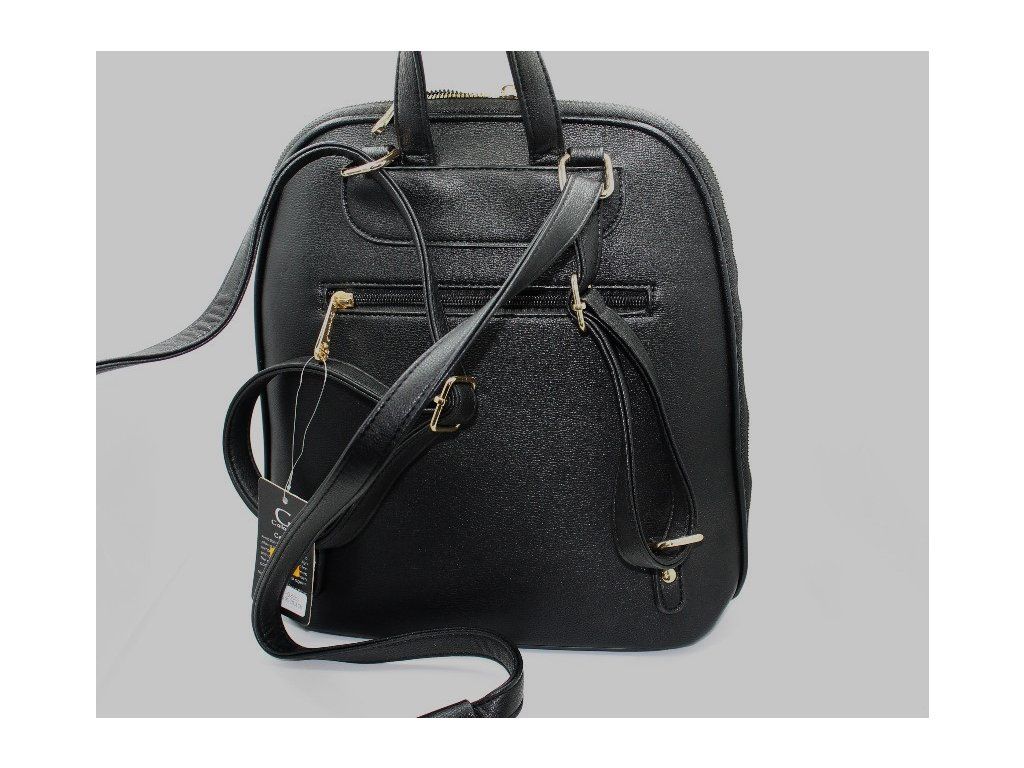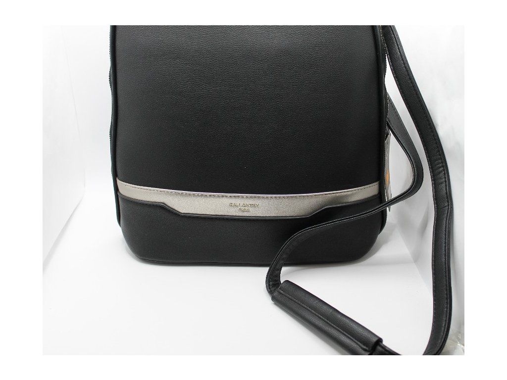 Batoh z umělé kůže černý vpředu je stříbrná aplikace. Velice lehký na zip, uvnitř je přihrádka na zip.