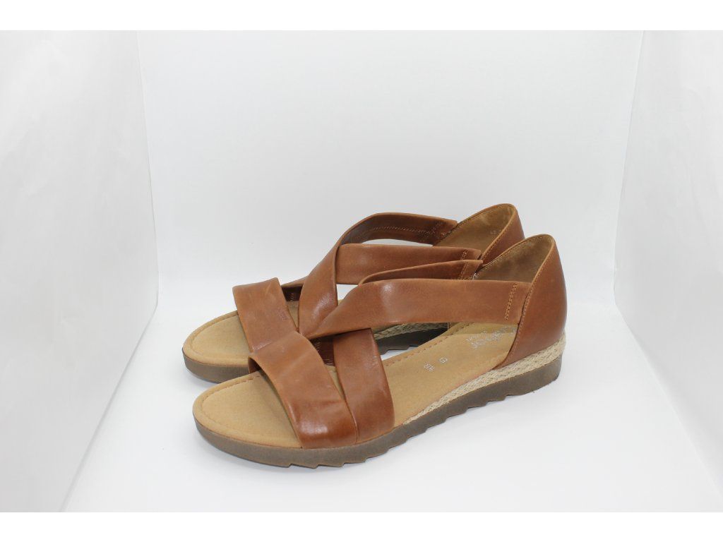 Hnědé sandály s pevnou patou na klínu kombinace juta /ambra.Comfort šíře G.